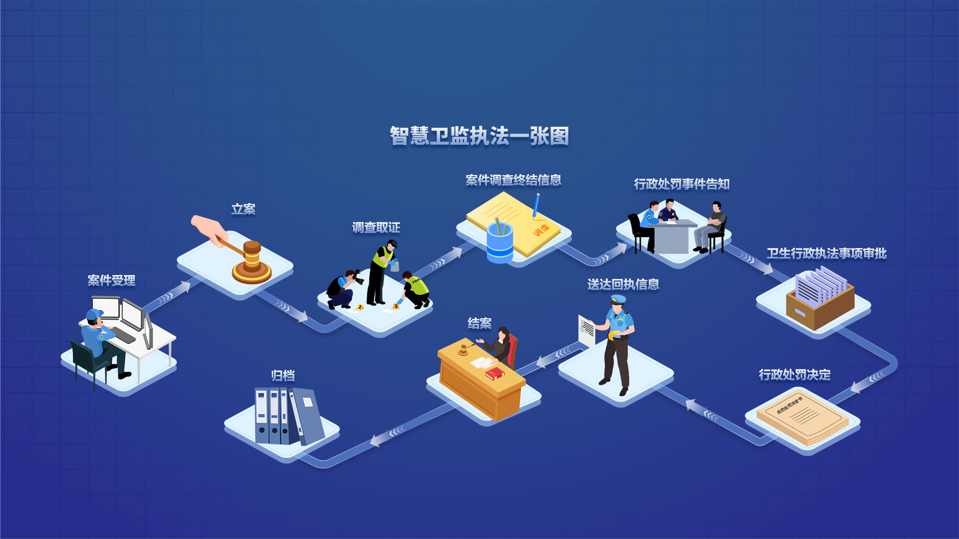 “智慧衛(wèi)監(jiān)綜合監(jiān)管服務(wù)管理系統(tǒng)”涵蓋監(jiān)督執(zhí)法應(yīng)用、非現(xiàn)場執(zhí)法應(yīng)用、碼上監(jiān)管、可視化駕駛艙、信息交換系統(tǒng)等內(nèi)容,實現(xiàn)加強衛(wèi)生監(jiān)督綜合執(zhí)法能力建設(shè),依法推進衛(wèi)生監(jiān)督工作,不斷創(chuàng)新衛(wèi)生監(jiān)督執(zhí)法手段,提高衛(wèi)生監(jiān)督的監(jiān)管和應(yīng)急處置水平,通過建設(shè)智慧衛(wèi)監(jiān)系統(tǒng),將傳統(tǒng)現(xiàn)場監(jiān)管與非現(xiàn)場物聯(lián)網(wǎng)智能監(jiān)督監(jiān)測手段相結(jié)合,解決目前衛(wèi)生監(jiān)督機構(gòu)無法及時掌握和處置突發(fā)狀況的問題,做到在第一時間獲取現(xiàn)場數(shù)據(jù),在事件發(fā)生、升級前提前預(yù)警和處置,提高執(zhí)法效率。